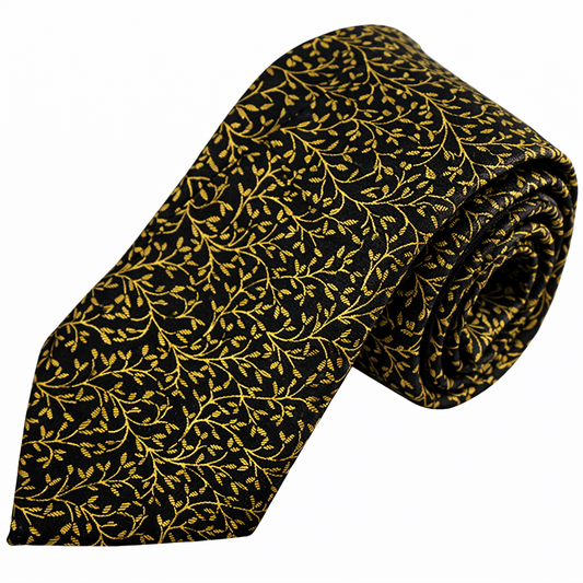 Adults Self Tie Neck Tie Vine Pattern Black and Gold
