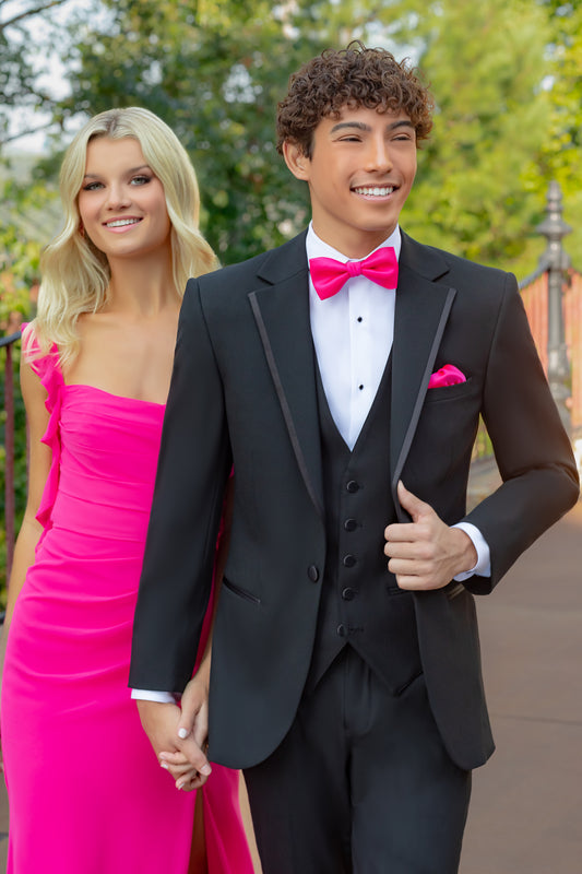 "The Metro" Men's Slim Fit Black 3 Piece 2 Button Notch Tuxedo