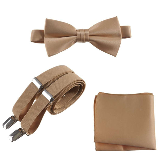 Pre-tied Satin Bow Tie & Pocket Square with Adjustable Stretch Elastic Suspender