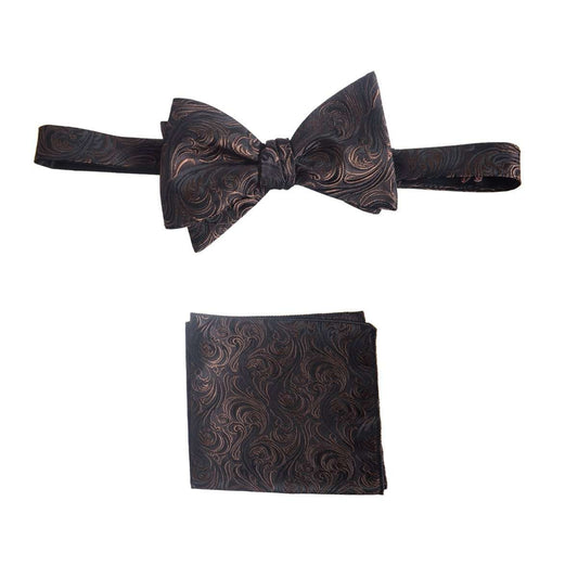 Self Tie Bow Tie and Pocket Square Handkerchief Set of Satin Paisley Jacquard