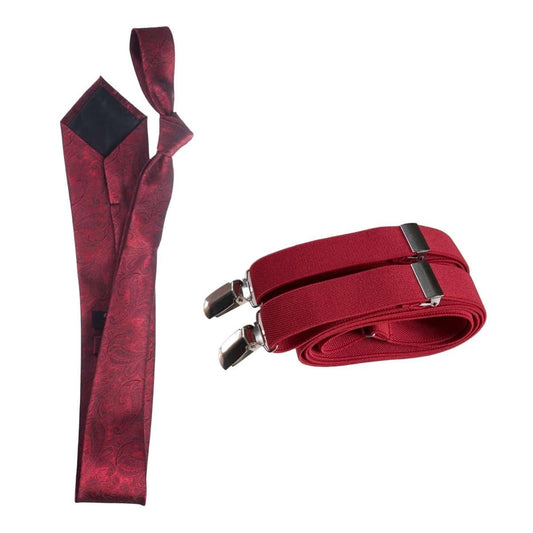 Classic Windsor Self Tie Paisley Jacquard Necktie and Suspenders